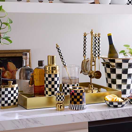 This tray serves in style, featuring a printed glass surface done in a black and gold version of our iconic Flower Market pattern.