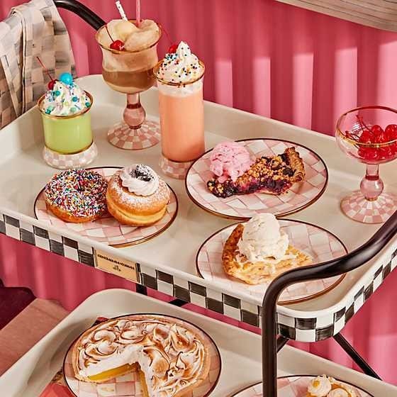 Set a place at the table for our Rosy Check Enamel Salad/Dessert Plate. Similar in theme to our signature Courtly Check® enamel pattern, Rosy Check checks all our boxes. It’s pretty, it’s pink, and it’s classic. The heavy-gauge steel underbody is glazed with hand-painted, color-dragged checks in a range of rosy hues and rimmed in bronzed stainless steel.